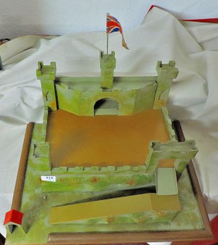 Next Image 419 I took two lpictures of this fort, lot 419, onje with the drabridge down and one with it up. It also disassembles readuly, with a drawer in the base for putting the bits in when it is not in use.