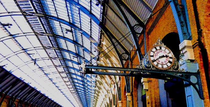 Previous Image Next Image Kings Cross clock The platform from which the train to King’s Lynn was l.eaving was revealed with a mere eight minutes to spare, and if you going to Lynn you have to go to the front of the train (or else get out and dash along the platform at Cambridge).