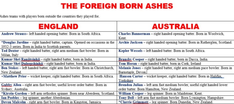 All Time XIs – The Foreign Born Ashes