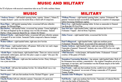 All Time XIs – Music and Military