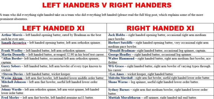 All Time XIs – Left Hand v Right Hand