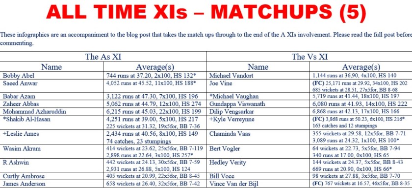 All Time XIs – Match Ups (5)