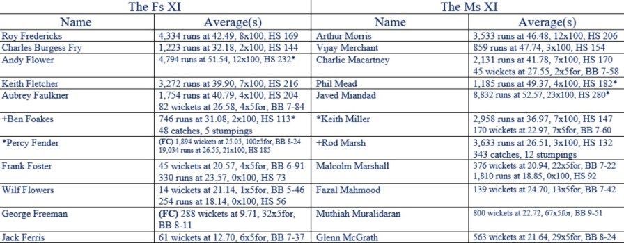 All Time XIs – Match Ups 25