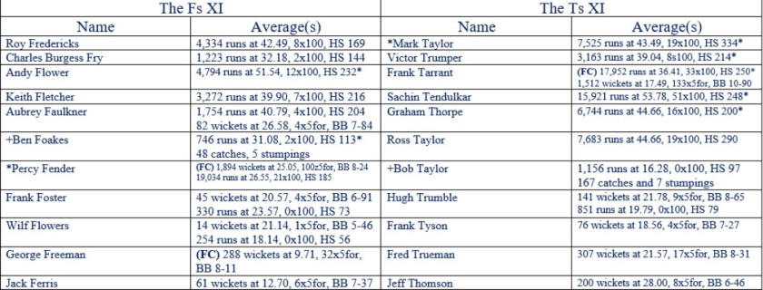 All Time XIs – Match Ups 26