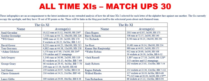 All Time XIs – Match Ups 30