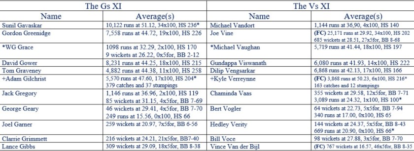 All Time XIs – Match Ups 30