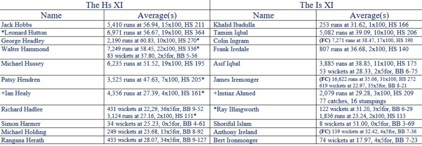 All Time XIs – Match Ups 31