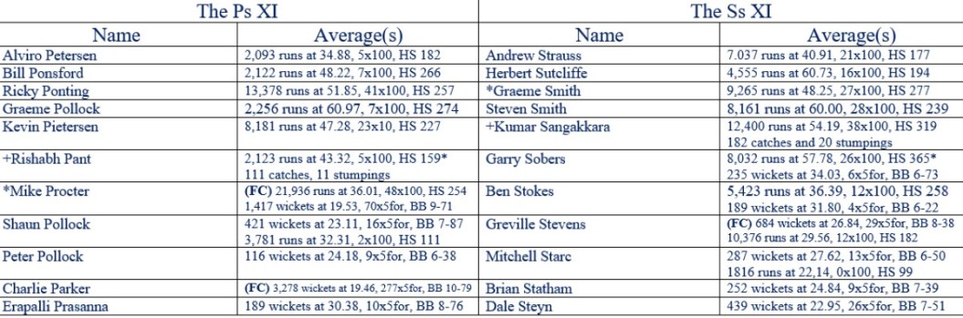 All Time XIs – Match Ups 55