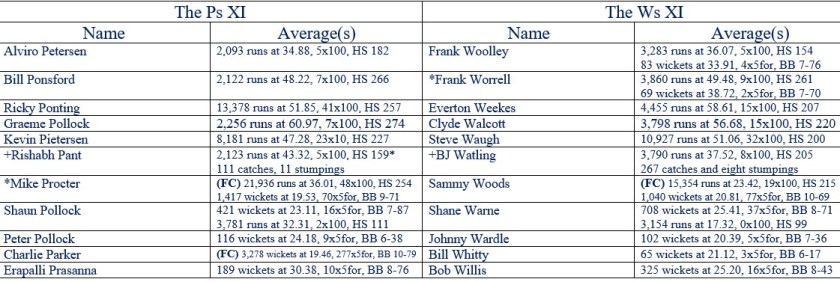 All Time XIs – Match Ups 56