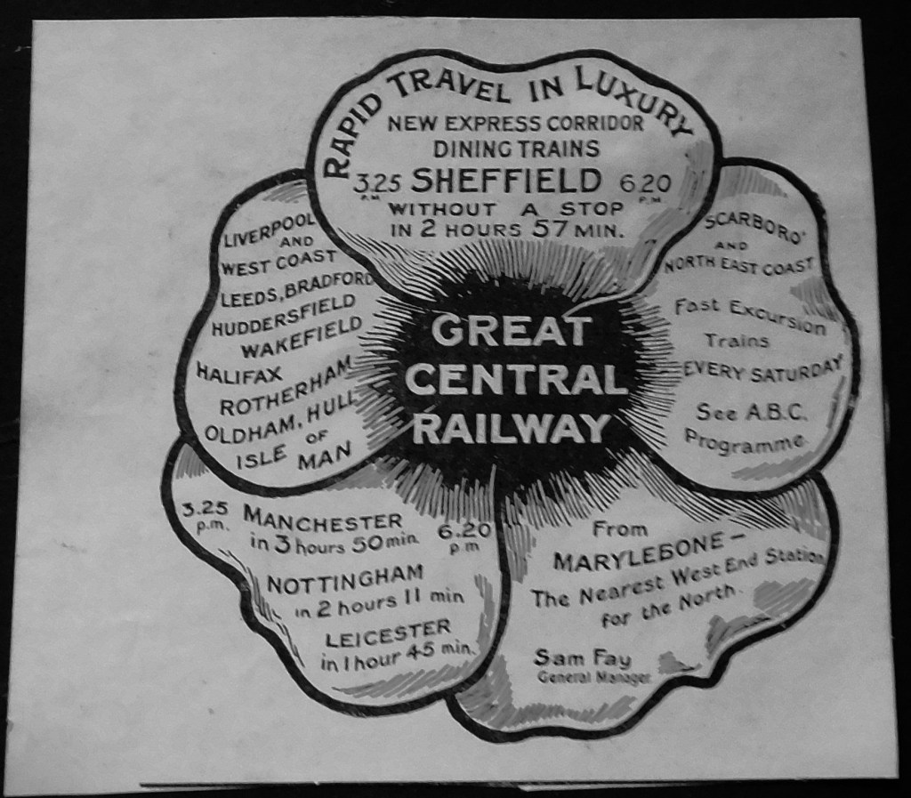 My interest in the Great Central Railway advert was the only interest of any kind shown in this lot, which was duly knocked down to me. My treatment of the item since taking possession of it reflects my reason for buying it, as shown by the following pictures…