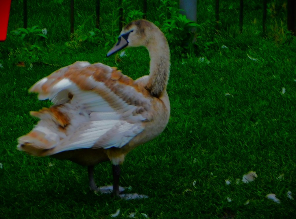 Kettlewell Lane leads out on to what at that stage is Littleport Street, though a little way north it becomes Gaywood Road. By this stage one is very close to the town centre, but one is not committed to main roads. I crossed Littleport Street at the light controlled crossing on Eastgate Bridge, and headed down Highgate, past a little patch of greenery that sometimes yields pictures though not on this occasion, and down a little side passage that leads to a small bridge back over the Gaywood to the town side and another little section of greenery, which I exited on to Wyatt Street at the other side. I then crossed Wyatt Street, and took a footpath that runs alongside Eastgate primary school before coming out on Blackfriars Road, the road that runs past King’s Lynn station. At this point, for a brief period there are no further options for main road avoidance, so I followed the road round past the station, and shortly after the station headed into the park called The Walks. I headed alongside another section of the Gaywood (heavily sculpted at this stage of its route) until I reached the white metal bridge that leads in to the Vancouver Garden wherein is located the bandstand. I exited the Vancouver Garden by the other bridge from it, crossed the Broadwalk, and headed for the Seven Sisters exit. This section did not yield many pictures, but there were a few…