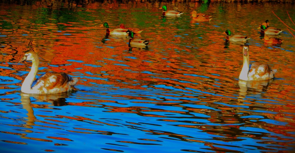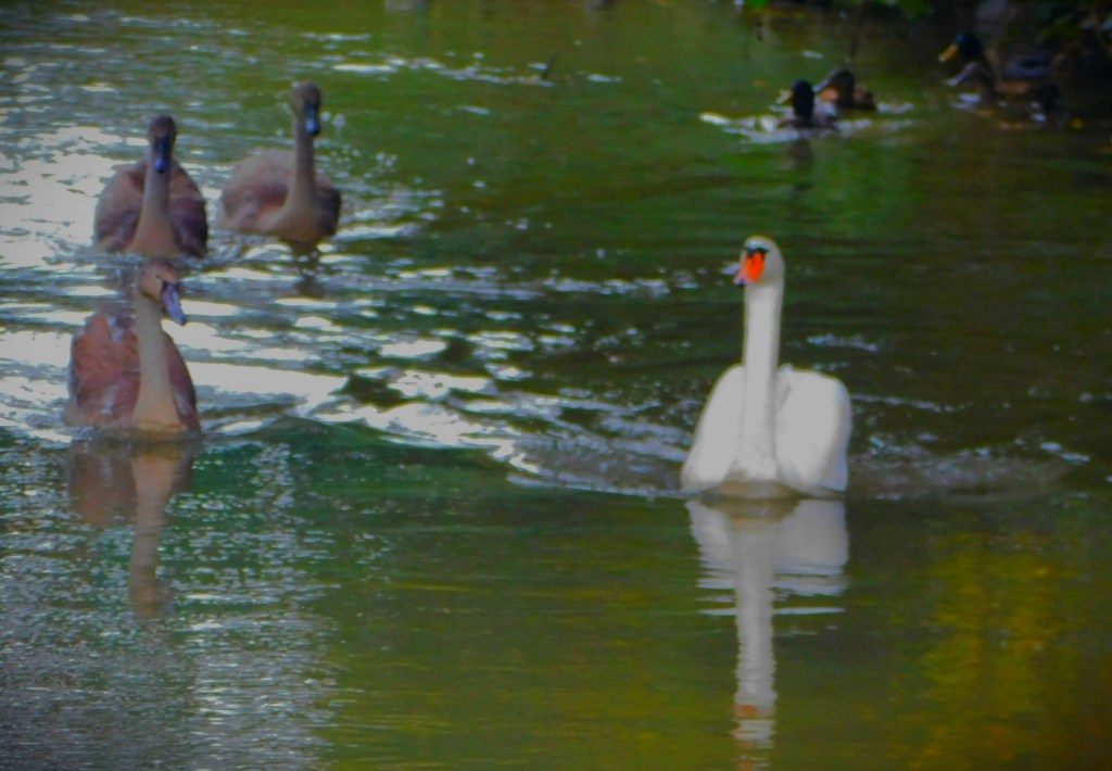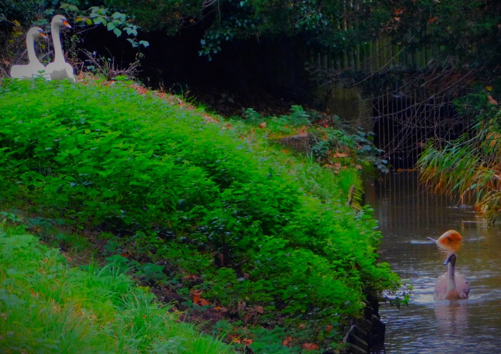 I started by leaving my house by the back door, as I was heading at first in the general direction of the town centre. The road that runs behind the row of houses in which I live is a private road and is unnamed. It disgorges on to Raby Avenue, which I crossed, and then headed down Townshend Terrace, a side road which forms a right angle, running from Raby Avenue to a pond at which point it swings 90 degrees and disgorges onto another road. However, as you will see I was not going that way. The pond usually yields pictures, and it did so this day as well…