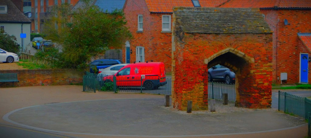 The South Gate (town side)The South Gate (out of town side).The only picture I got in Hardings PitsLapwings and Gulls at the far edge of the Great OuseKing’s Lynn viewed from the river bank on leaving Hardings Pits/A gathering of birds.