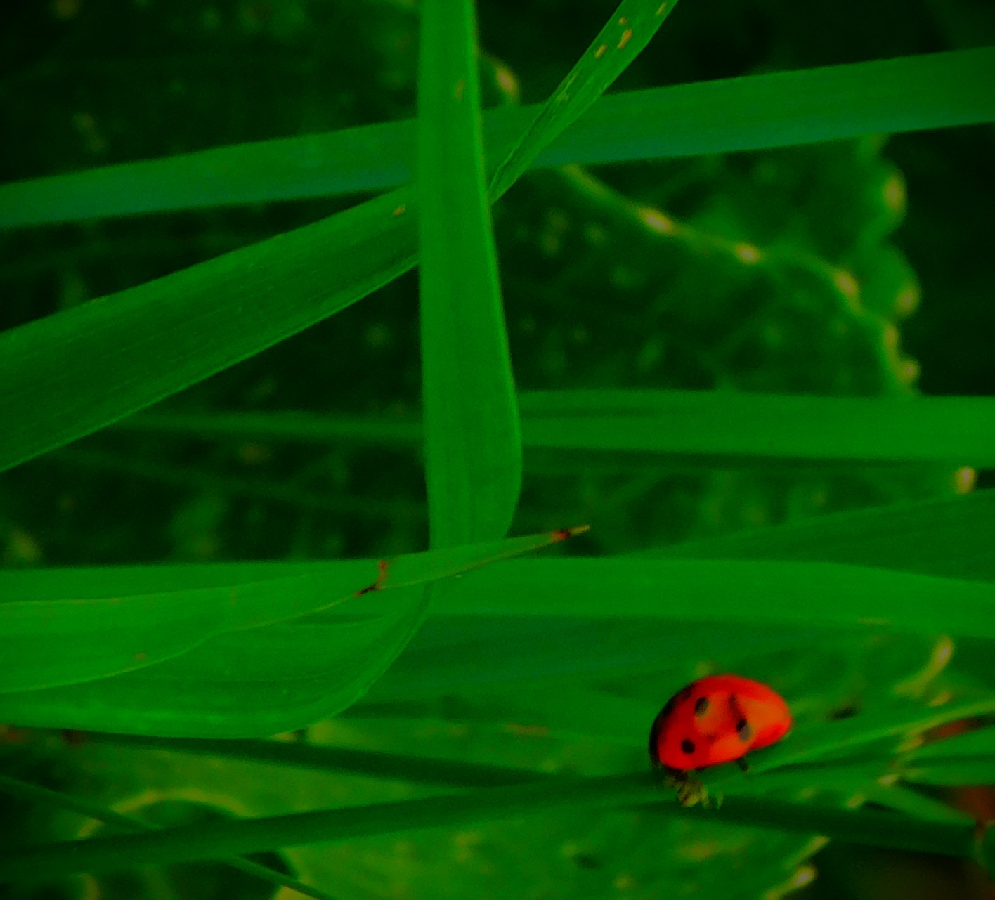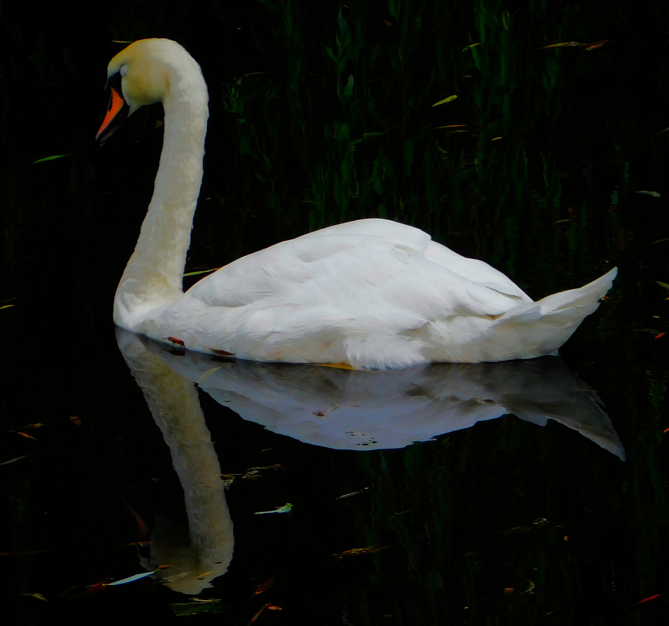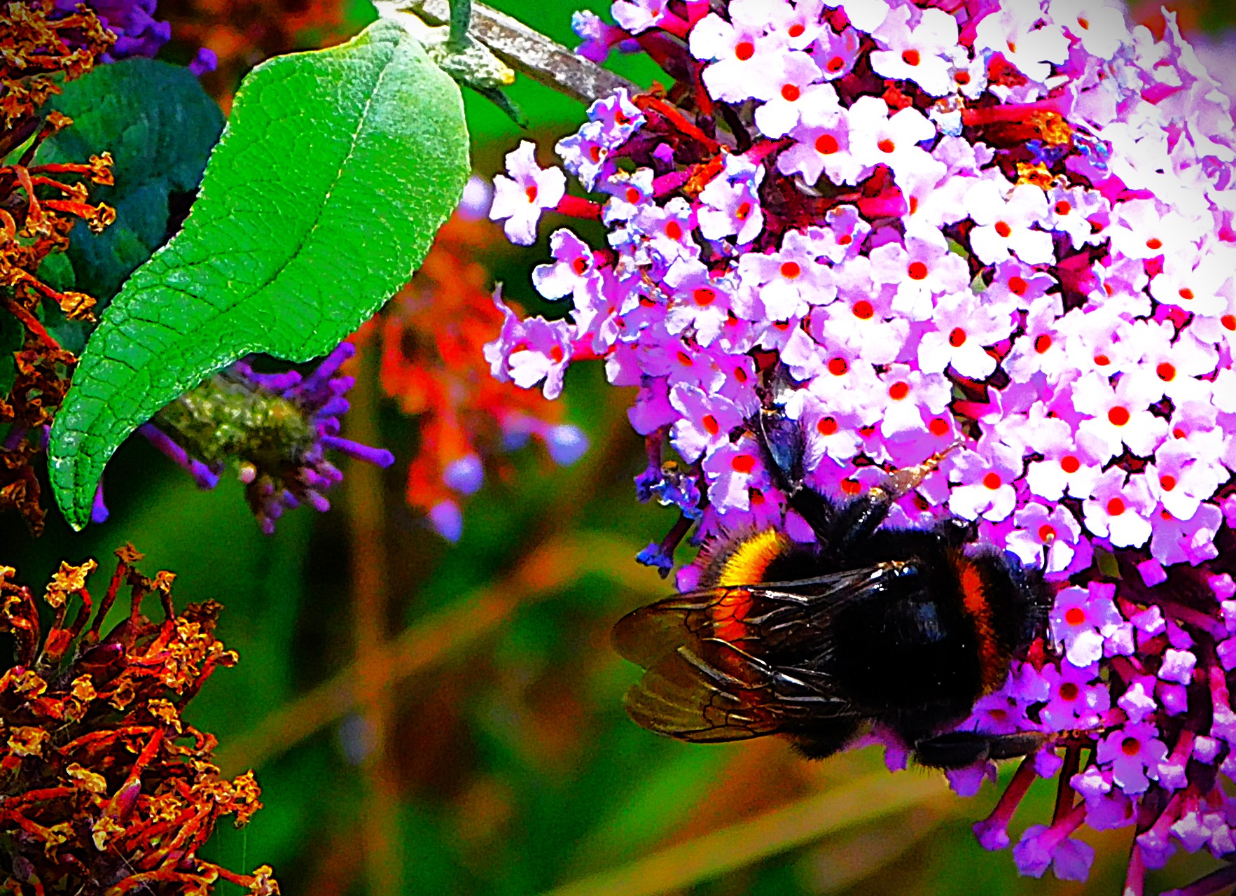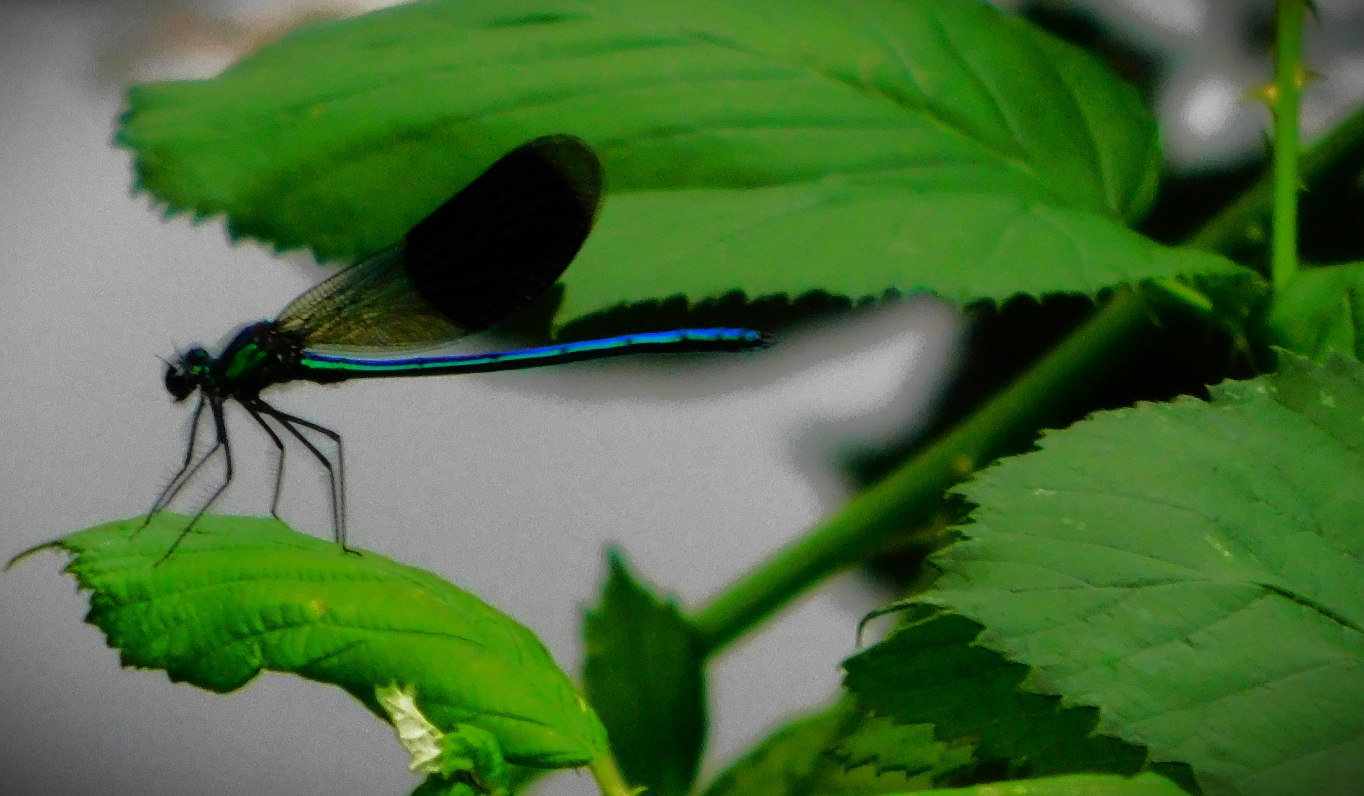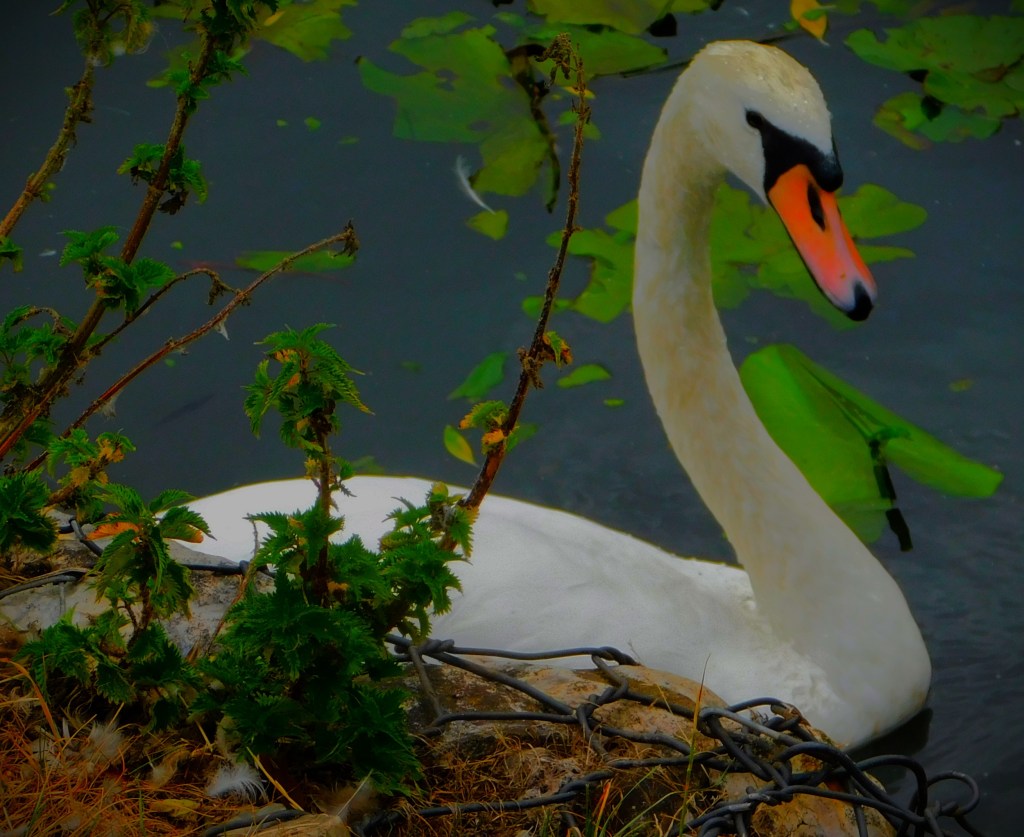 I have previously been guilty of mislabelling this – it is not a Cinnabar Moth, it is a six-spot Burnet Moth.This picture and the next, a close up focussing on the insects (two six-spot Burnet moths and one large buff tailed Bumblebee) have already had some success on Mastodon.A dragon fly balanced on a leaf overlooking one of the sections of the Gaywood in The Walks.A precarious resting spot – this reed is entirely surrounded by the waters of the Gaywood, near Eastgate Bridge.