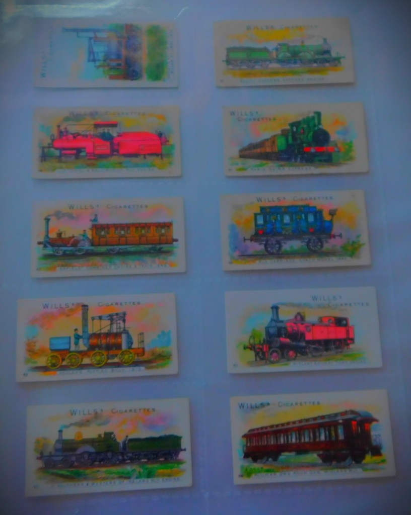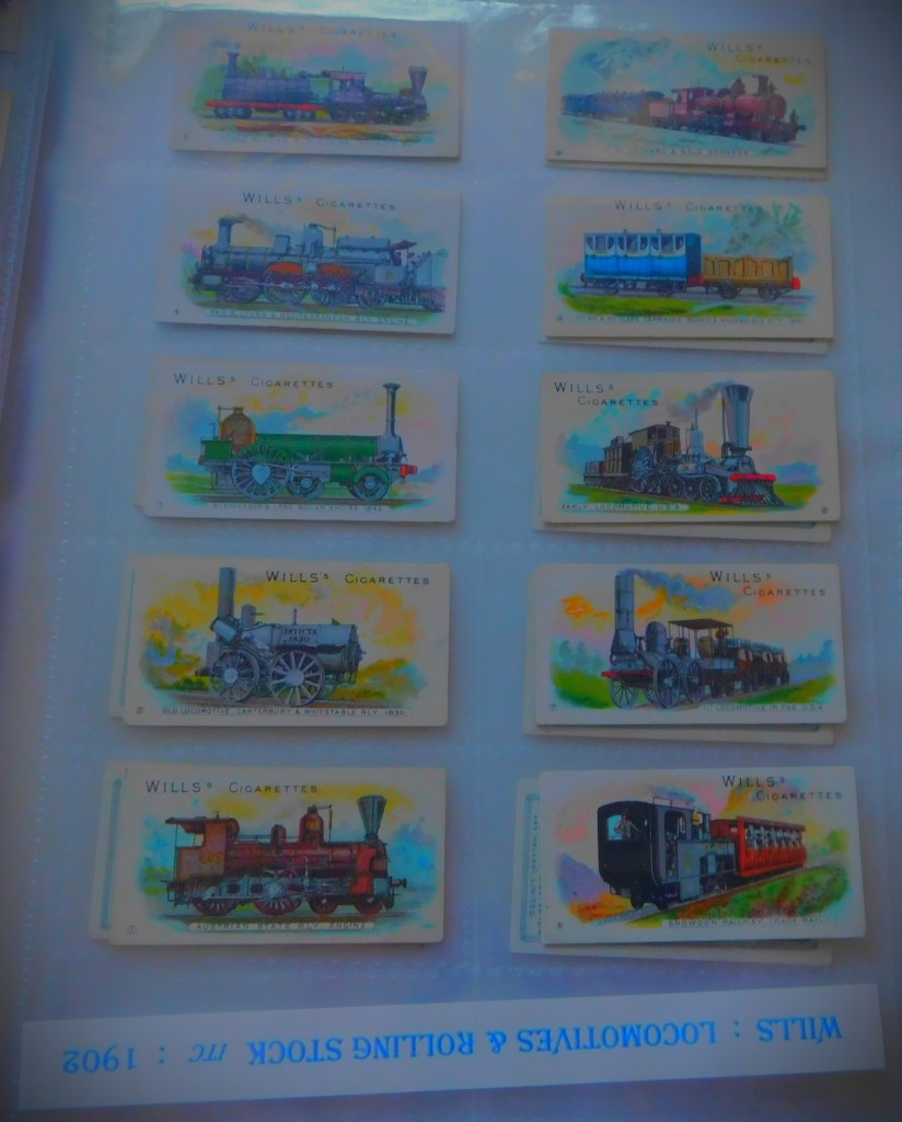 James and Sons had an auction this week, which went reasonably well after a very quiet start. I was successful on two items, lot 293, a small barometer in the shape of a helmsman’s wheel and lot 359, an early (1902) set of railway themed cigarette cards. The images I took of these yesterday morning form this gallery…