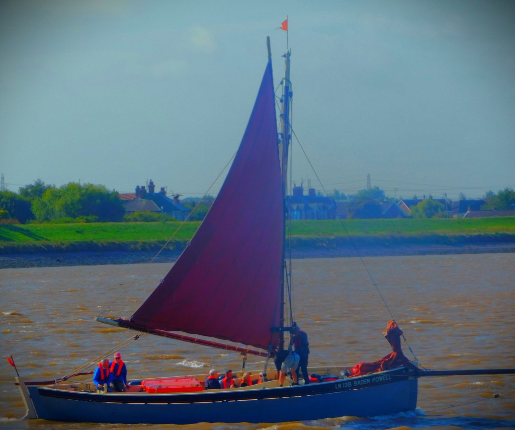This is by of an aperitif to the image gallery that ends this post. The Baden-Powell is an old cockling boat, and this morning while I was out walking it went out on the Great Ouse. I have two videos and six still images to share.