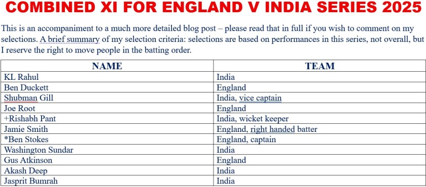 Combined XI for the England v India Test Series 2025