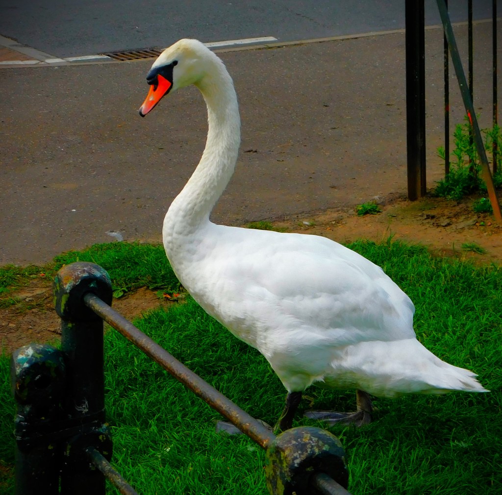 A Charles III £1 coin – not especially the splendid reverse. The individual pictures from which this composite was made appear later in the gallery.An unusual juxtaposition – a mute swan, a freshwater bird, and a cormorant, more usually a sea bird, side by side in a pond in North Lynn.This swimming rodent was moving too fast for me to capture it, though I tried.The reverse of the £1 coinThe obverse of the £1 coin.